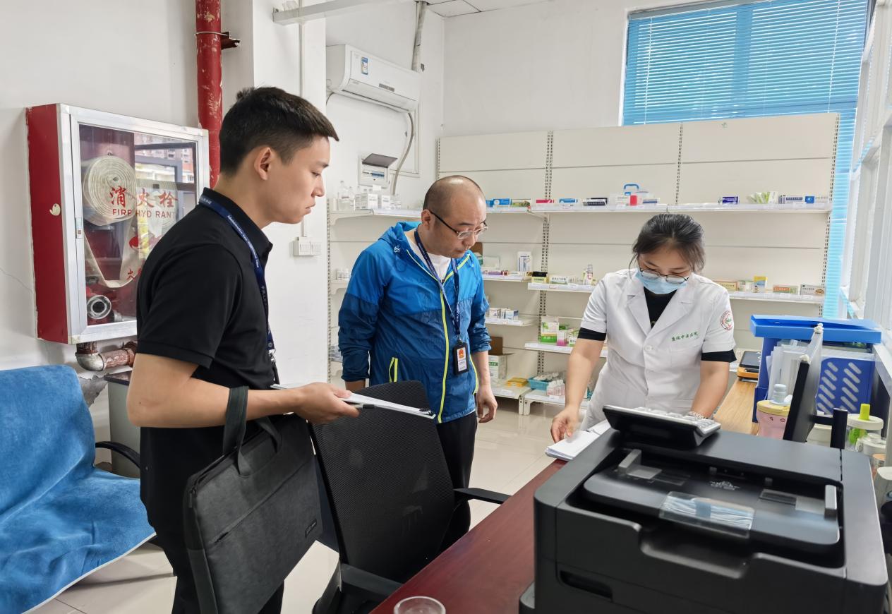 在校医务室,检查组详细询问了传染病突发应急处置流程,仔细查阅了医疗废物处置记录,并对医废暂存间的管理情况进行了现场检查。