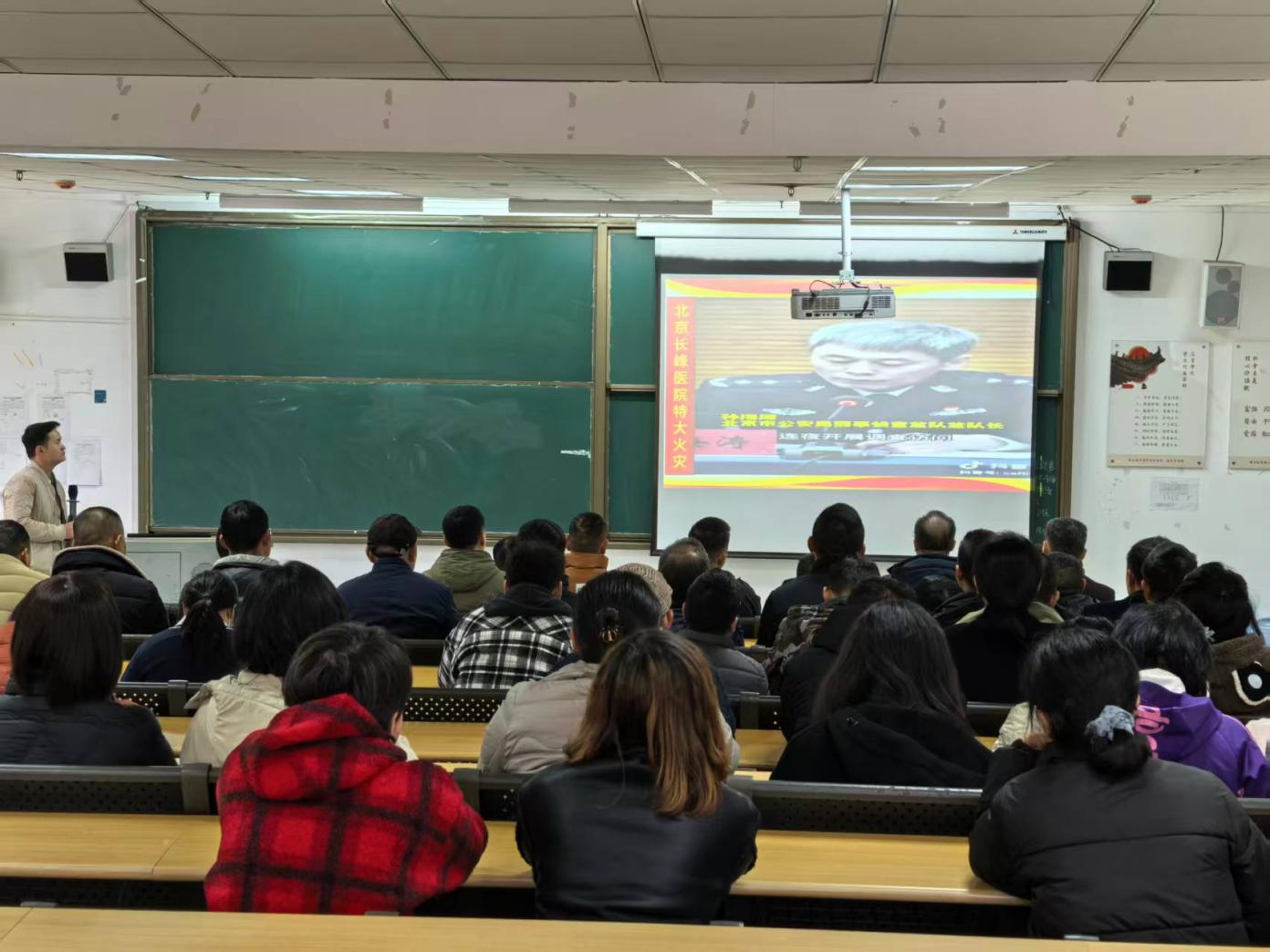 2025年11月18日上午,后勤管理处全体教职工在综合楼206教室,参加了保卫处组织的消防安全专题培训。