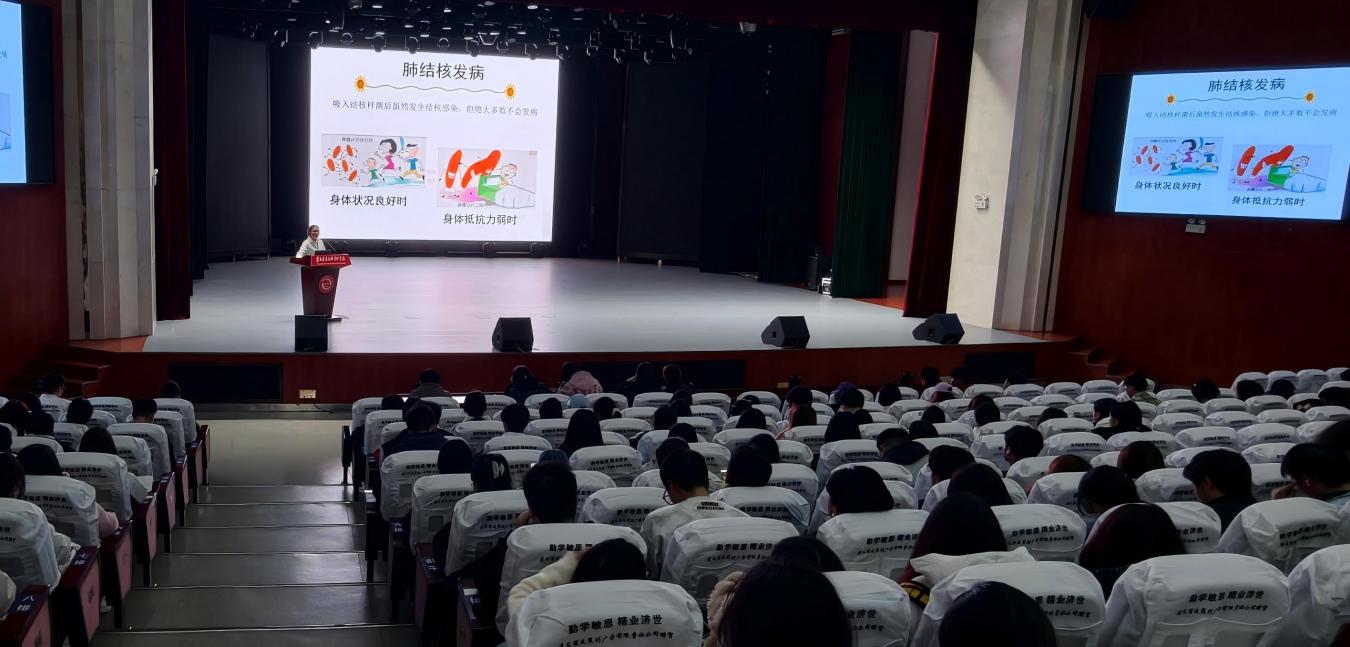 为加强校园传染病防控,提升学生健康素养,3月24日正值第31个“世界防治肺结核病日”,后勤管理处在学校大礼堂举办“肺结核防治知识”主题健康讲座,来自各系部的500余名学生到场参与。